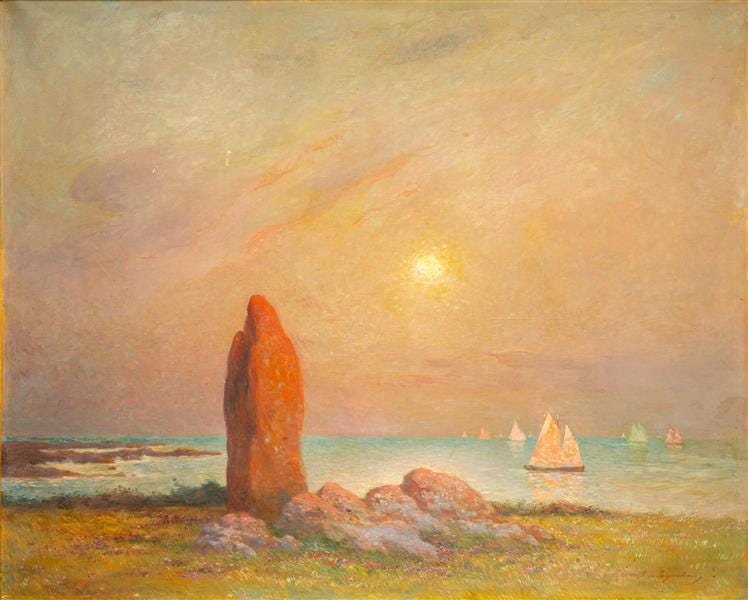 Reichen die von ihr getragenen Sehnsüchte von dem Wunsch nach einem Gemeinwesen, das im Einklang mit der Natur und ihren Kräften lebt, bis hin zur Hoffnung auf eine Rückkehr zum heidnischen Übermenschentum, ist das «Mystische» an dieser Stelle darauf zurückzuführen, was – so will es die geomantische Lehre – die germanischen Ahnen noch fähig waren, wahrzunehmen: Kraftorte und Kraftlinien, die sogenannten «Leylines». Gleich sie für eine architektonische Idee stehen; ein Ausdruck von Weltverständnis, das sich ständig neu entfaltet und entwickelt, gelten Kraftorte als Plätze, die von Gott selbst bestimmt wurden; an denen er Kontakt mit Menschen aufgenommen hatte, an denen Menschen verstorben waren oder gar ein Engel einem Heiligen den Platz als Wunderquelle im Schlaf offenbarte. Als geographisch fixierte Schnittstellen zwischen Alltag und Schicksal, zwischen Gott und Mensch, zwischen Leben und Tod, errichtete man an ihnen Hinkelsteine, sogenannte «Menhire», deren Bezeichnung sich dem Bretonischen entlehnt, wo sie in Carnac in ihren kilometerlangen Reihen oder kreisförmig als Stonehenge den Archäologen bis heute ein Rätsel sind.